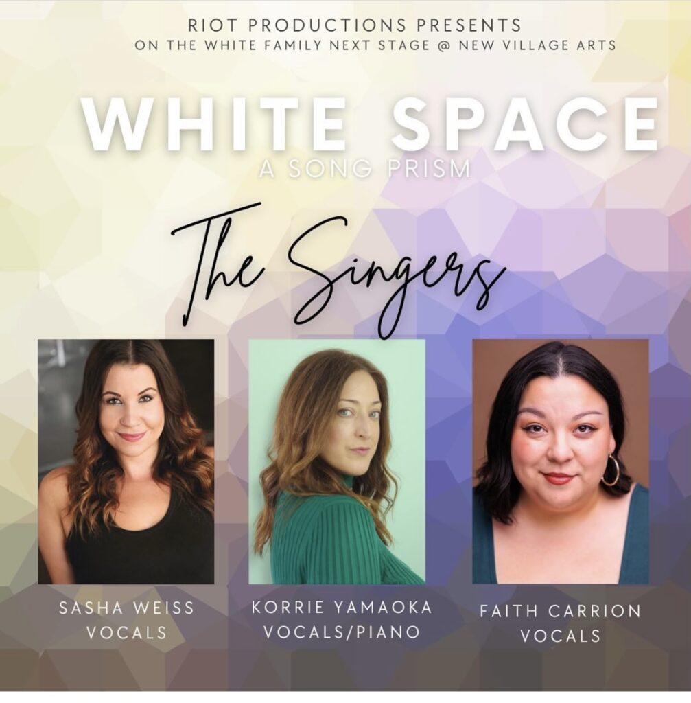 “White Space”, a song prism by Korrie Yamaoka, explores the avatars of a creative mother’s mind as she struggles to return to her full artistic life under the demands of a new parent’s schedule. Korrie Yamaoka has described the title “White Space” as the precious white spaces on the calendar, unfilled by time, where there was an hour for composing or singing or even just thinking about anything beyond the banal.